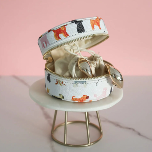 Een vrolijk en handig juwelendoosje. Ideale compagnon voor on-the-go elegantie.