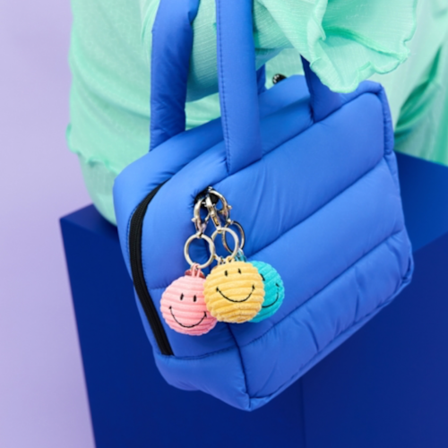 Instant happiness met deze vrolijke smileys in corduroy stof. Ideale vriend voor je sleutels ;)