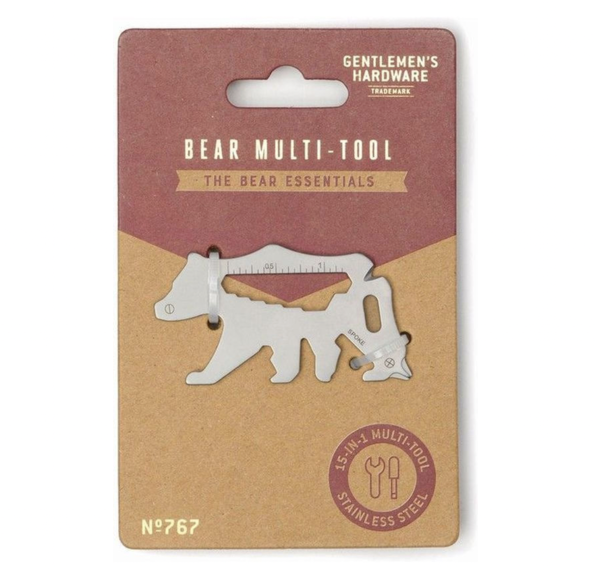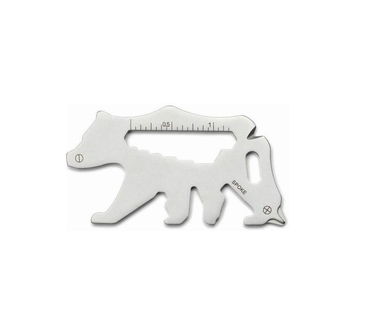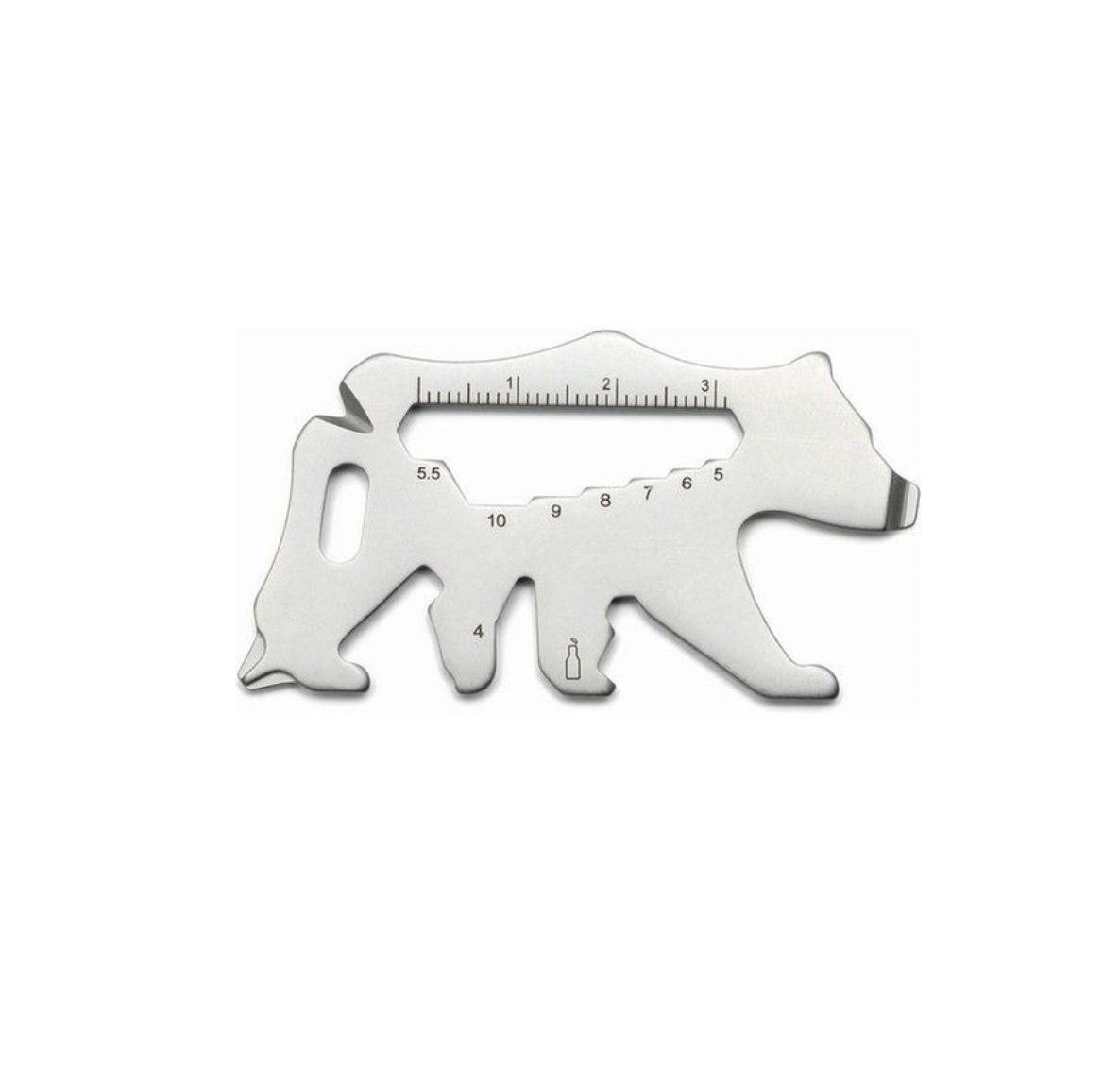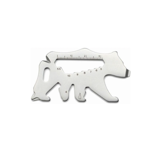 Wees altijd voorbereid met deze tool! Gemaakt van roestvrij staal in de vorm van een beer, is deze handige multi-tool ontworpen om vijftien functies te dienen in één slimme tool. Gebruik hem als schroevendraaier, liniaal, flesopener en meer, of geef hem als het perfecte cadeau voor elke outdoor-liefhebber.