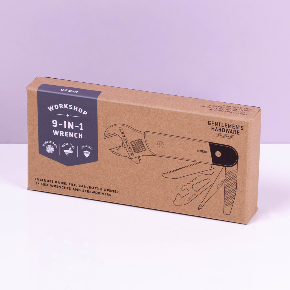 Wanneer is een moersleutel niet zomaar een moersleutel? Als het ook nog een zaag is, een gekarteld mes en een snijmes!