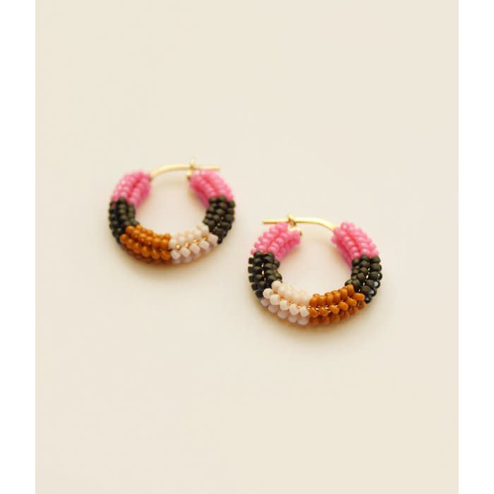 Er wordt gewerkt met glaskralen van hoge kwaliteit, elk met een diameter van minder dan twee millimeter. Met naald en draad worden de kralen met de hand geweven tot elegante en unieke oorbellen.