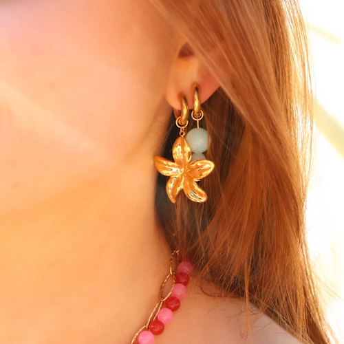 Het ringetje van deze prachtige oorbel heeft een diameter van 8 millimeter, de bloem meet 30 x 20 mm. De oorbel is gemaakt van premium stainless steel, waardoor het niet zal verkleuren. Je kunt er dus gerust mee douchen, zwemmen, etc! 100% waterproof.