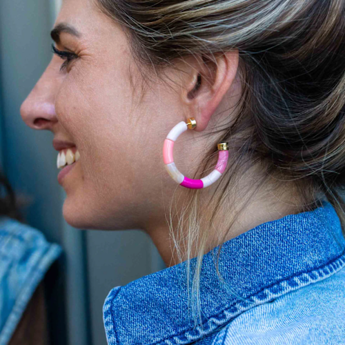 Ontdek deze leuke grote oorbellen van Parabaya. Je kan ze zelf personaliseren, de volgorde van de kleuren bepalen, of kiezen voor 1 kleur want er worden extra kralen bijgeleverd. Mix en match... echte ear candy ;)
