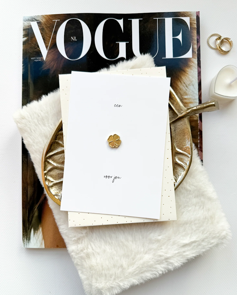 Op de achterkant van dit stevige kaartje kan je een leuke boodschap schrijven, je krijgt er een kraft envelop bij.