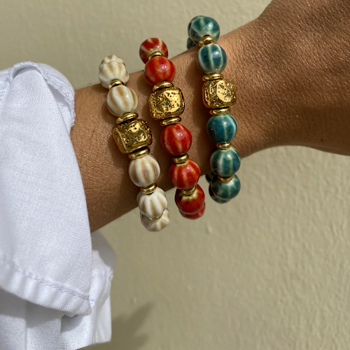 Scrunchie / Bracelet Bichous - Céramique Lune Rouge Brique