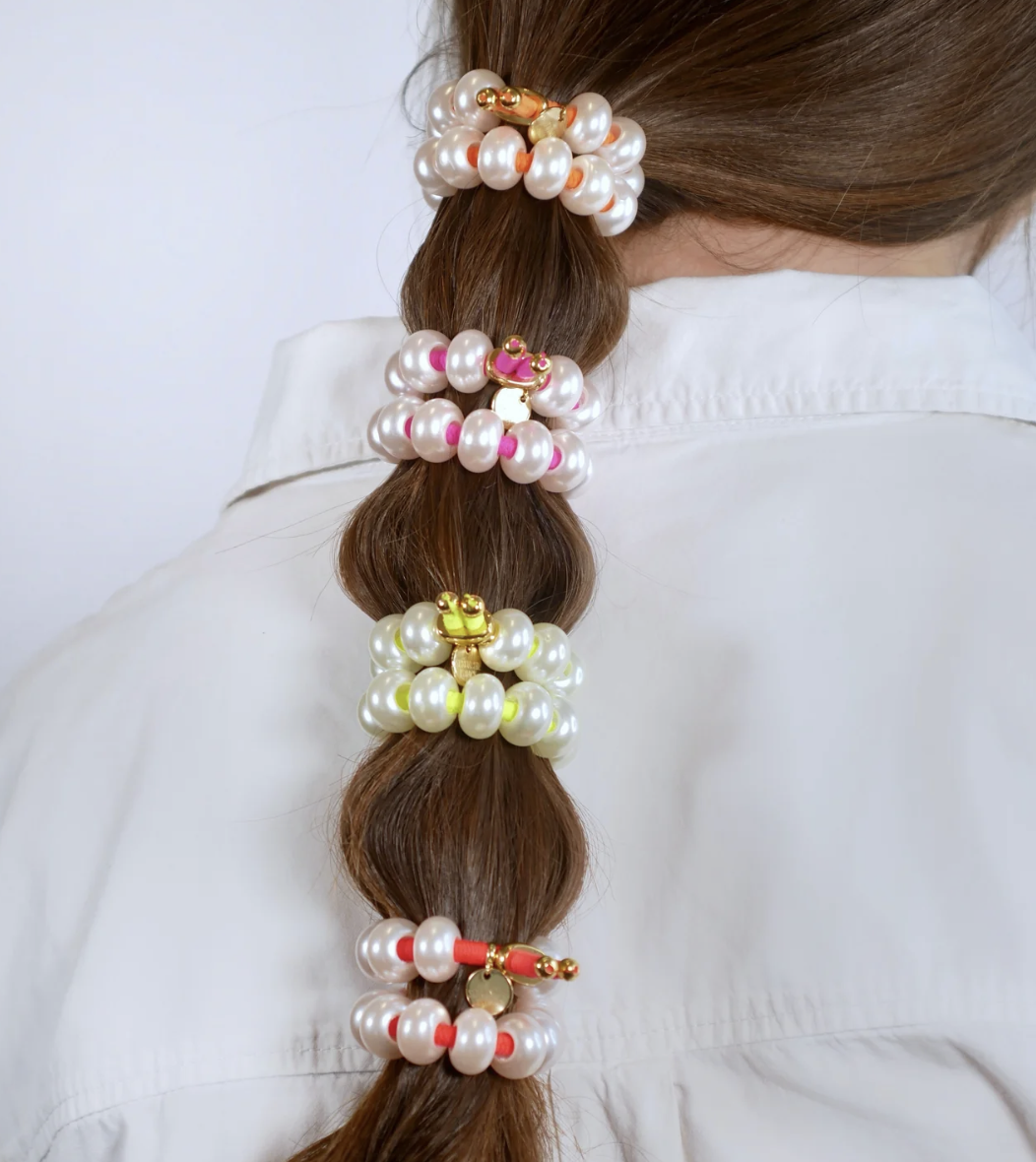 Newbie alert! Met Scrunchie Is Back heb je 2-in-1.. een elegante scrunchie én een hippe armband. Geen zwarte haarbandjes meer rond je pols maar een vrolijke eyecatcher die op elk moment in je haar kan verdwijnen! Een multi-aanwinst dus ... Kies je kleur en look and wear it differently ;)