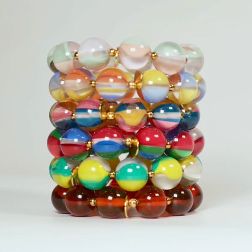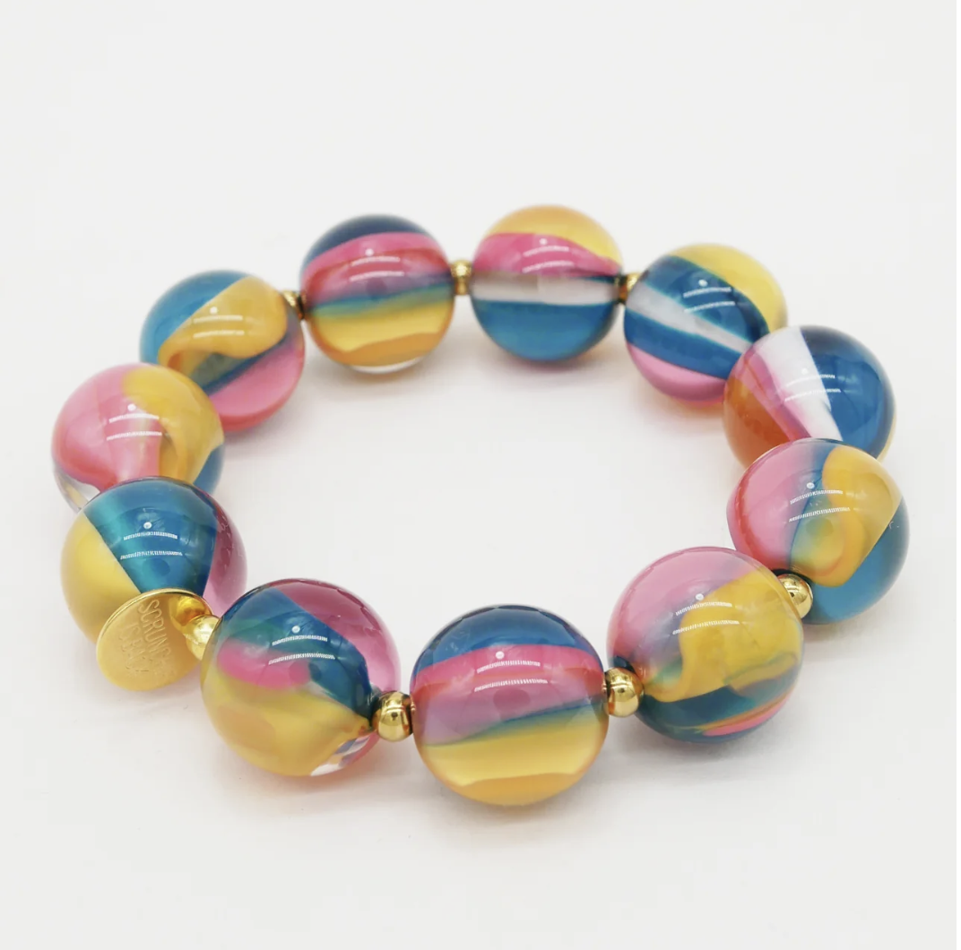 Scrunchie / Bracelet Bichous - Ronds Colorés Multi Bleu Canard
