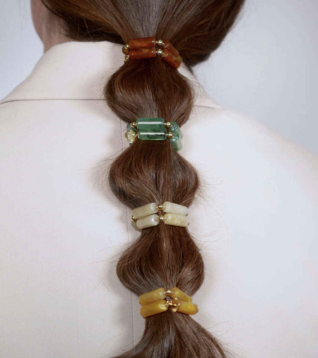 Newbie alert! Met Scrunchie Is Back heb je 2-in-1.. een elegante scrunchie én een hippe armband. Geen zwarte haarbandjes meer rond je pols maar een vrolijke eyecatcher die op elk moment in je haar kan verdwijnen! Een multi-aanwinst dus ... Kies je kleur en look and wear it differently ;)