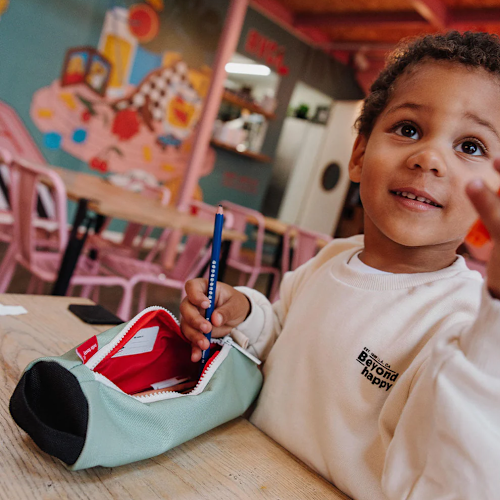 Een vrolijke pennenzak van Hello Hossy om mee te nemen naar school of te knutselen thuis of op vakantie of voor een daguitstap. Deze pennenzak is ruim genoeg voor alle schoolspullen, potloden, pennen.