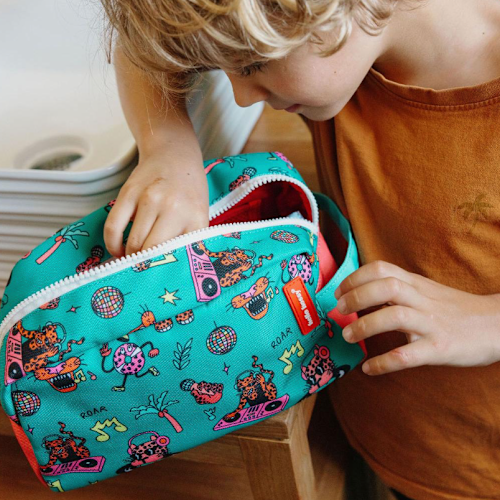 Toilettas op en top fun, vol kleur, leuk formaat. Ideaal voor kids. Leuk om te geven, nog leuker om te krijgen ;) Klaar om te vertrekken? Afmetingen: 25 x 14 x 14 cm 4.9 l Compartiment binnenin Met rits en handige draaglus