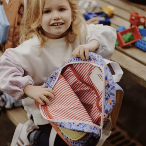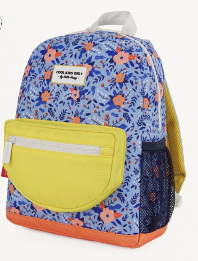 Een fleurige rugzak 'Champêtre, 2 tot 5 jaar' van Hello Hossy om mee te nemen naar school, op vakantie of voor een daguitstap. Deze rugzak is ruim genoeg voor een lunchbox en drinkfles, wat extra kledij of een A5 schriftje.