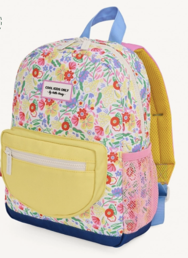 Een fleurige rugzak 'Garden Party, 2 tot 5 jaar' van Hello Hossy om mee te nemen naar school, op vakantie of voor een daguitstap. Deze rugzak is ruim genoeg voor een lunchbox en drinkfles, wat extra kledij of een A5 schriftje.