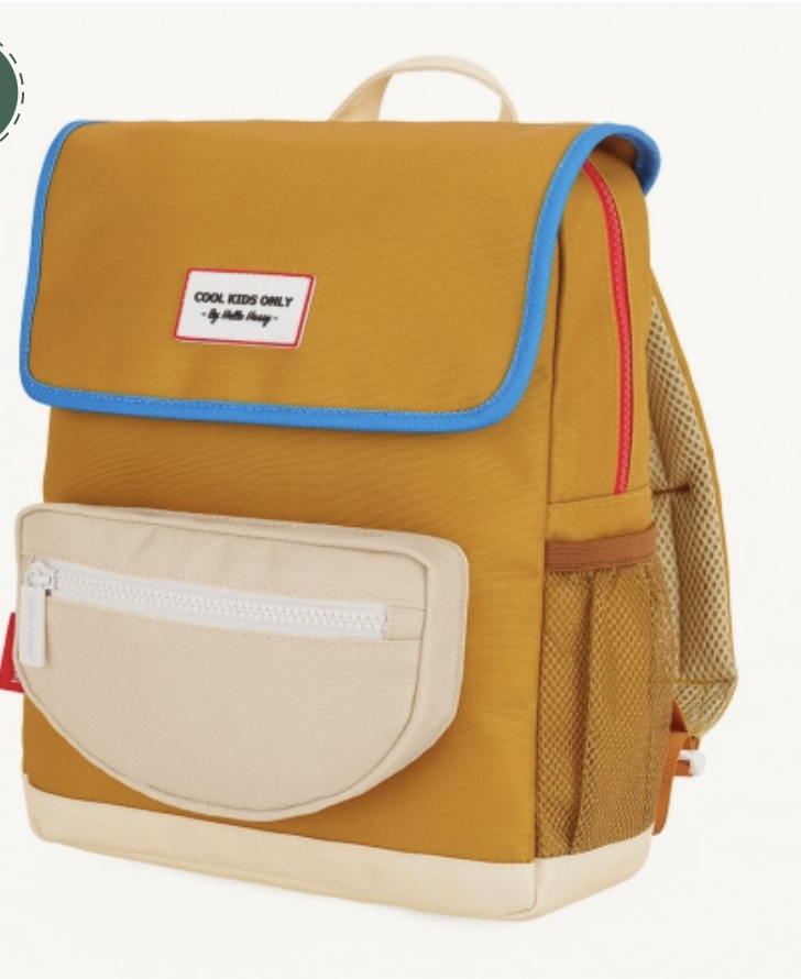 Een trendy rugzak 'Mini Honey, 2 tot 5 jaar' van Hello Hossy om mee te nemen naar school, op vakantie of voor een daguitstap. Deze rugzak is ruim genoeg voor een lunchbox en drinkfles, wat extra kledij of een A5 schriftje.