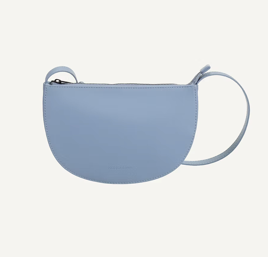 Schoudertas in leuke maanvorm. Gemaakt van hoogwaardig vegan leer en voorzien van een zwarte YKK rits. Binnenin vind je een extra vak om wat kleine spullen in op te bergen. De riem is verstelbaar in lengte.