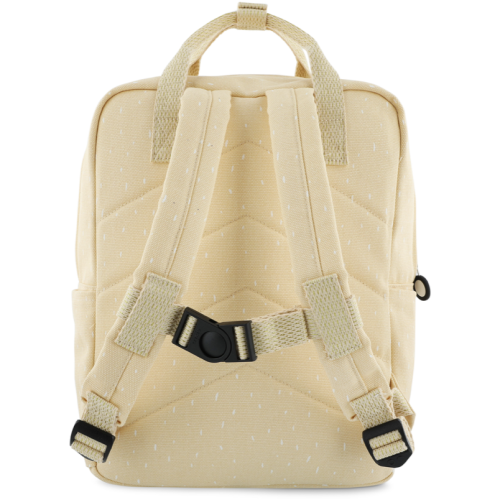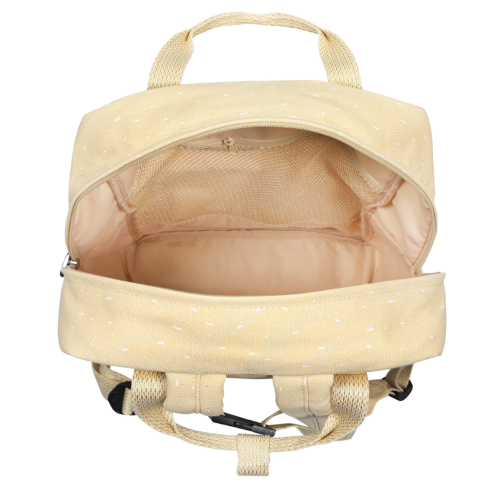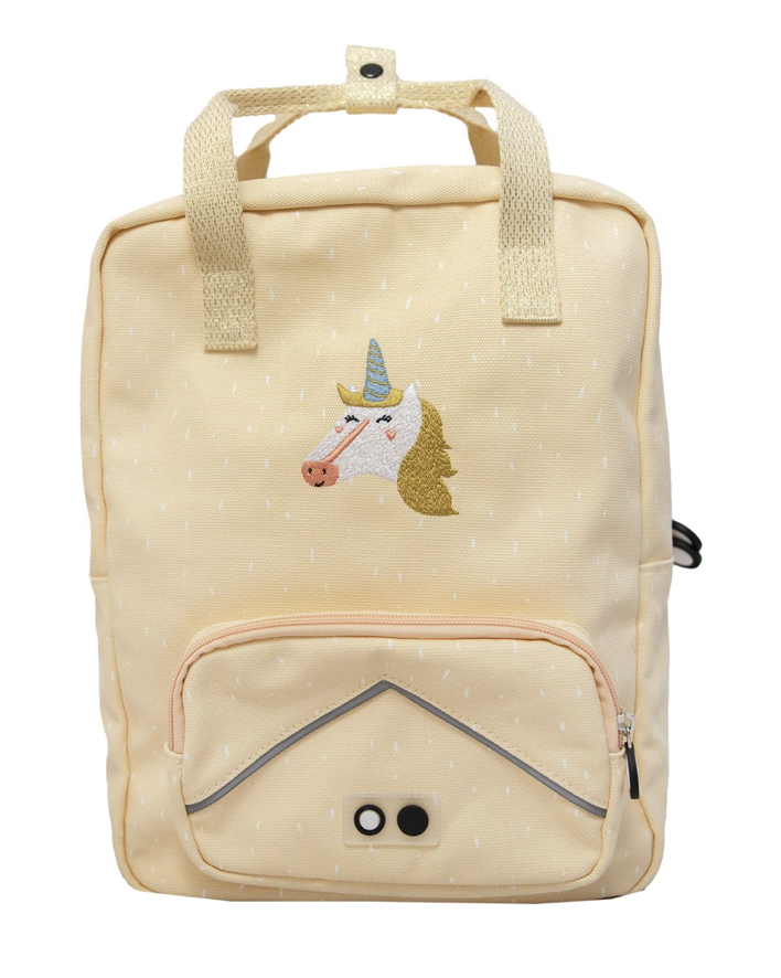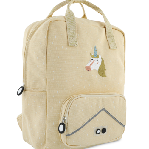 Kom op, tijd om de dag te beginnen! In deze ruime rugtas past alles wat jouw peuter nodig heeft. Hij is groot genoeg voor A4-boeken en mappen, met een gewatteerde achterzijde, verstelbare schouderbanden en een borstriem voor comfort. De tas heeft veel doordachte details, zoals een naamplaatje, een A4-houder en een gaasvak met rits aan de binnenkant. Aan de buitenkant zit ook nog een voorvak met rits, zakken voor een waterfles en snacks aan de zijkanten en reflecterende details. Het dierenstaartje aan de rits tovert op elk kindergezichtje een glimlach.