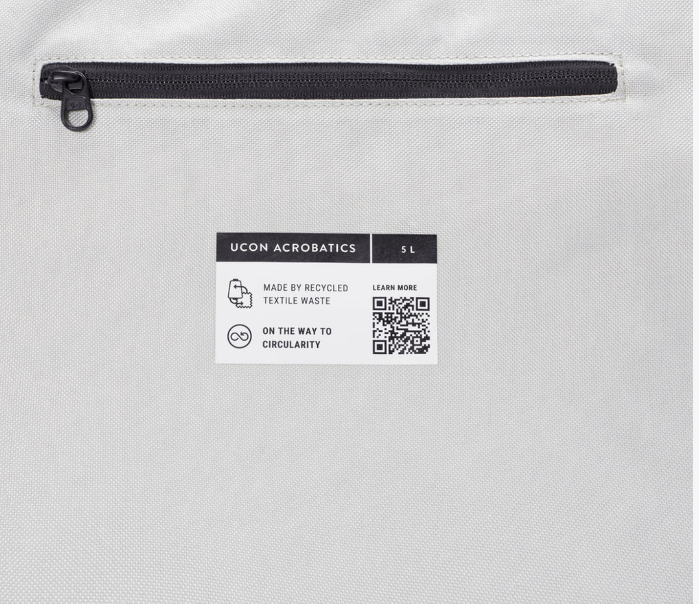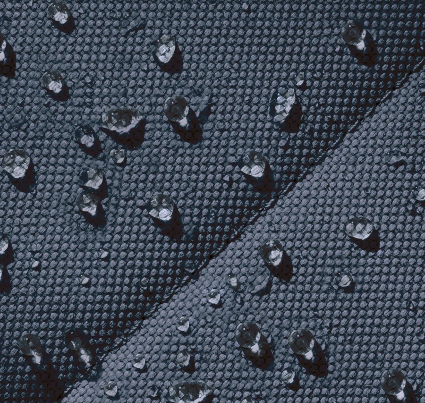 Soft linen-like 1200x900D rPET made from 96% recycled textiles with a waterproof TPU coating and PFA-free impregnation.