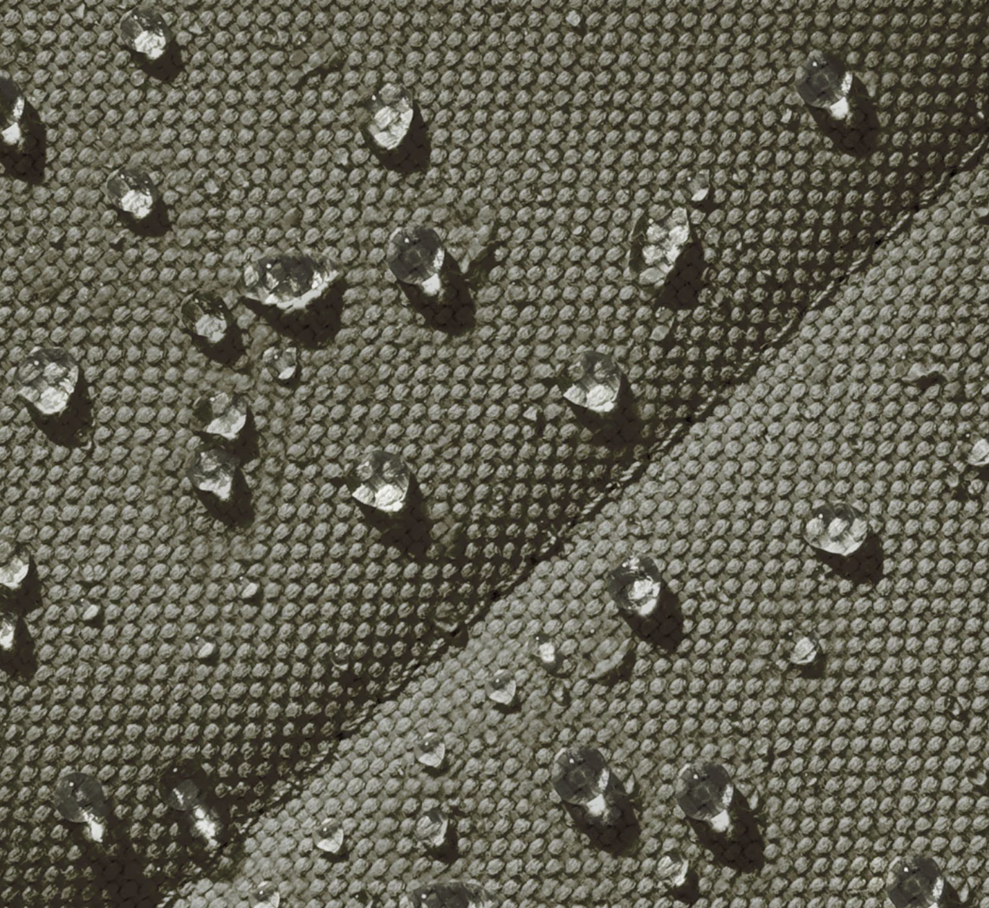 Soft linen-like 1200x900D rPET made from 96% recycled textiles with a waterproof TPU coating and PFA-free impregnation.