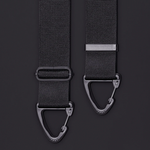 Micro-structured 300D rPET tech material made from 90% recycled textiles with a dirt-repellent PU outer coating and soft padding