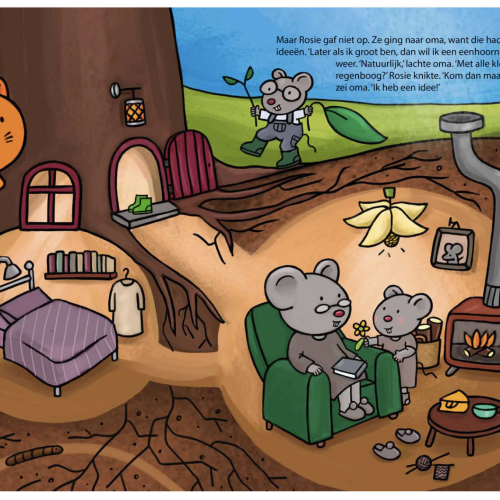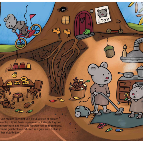 Ze houdt van kleur. Maar kleur bestaat niet in het leven van een grijze muis. Gelukkig trekt Rosie zich daar niets van aan. Want later als ze groot is, dan wordt ze een eenhoorn!