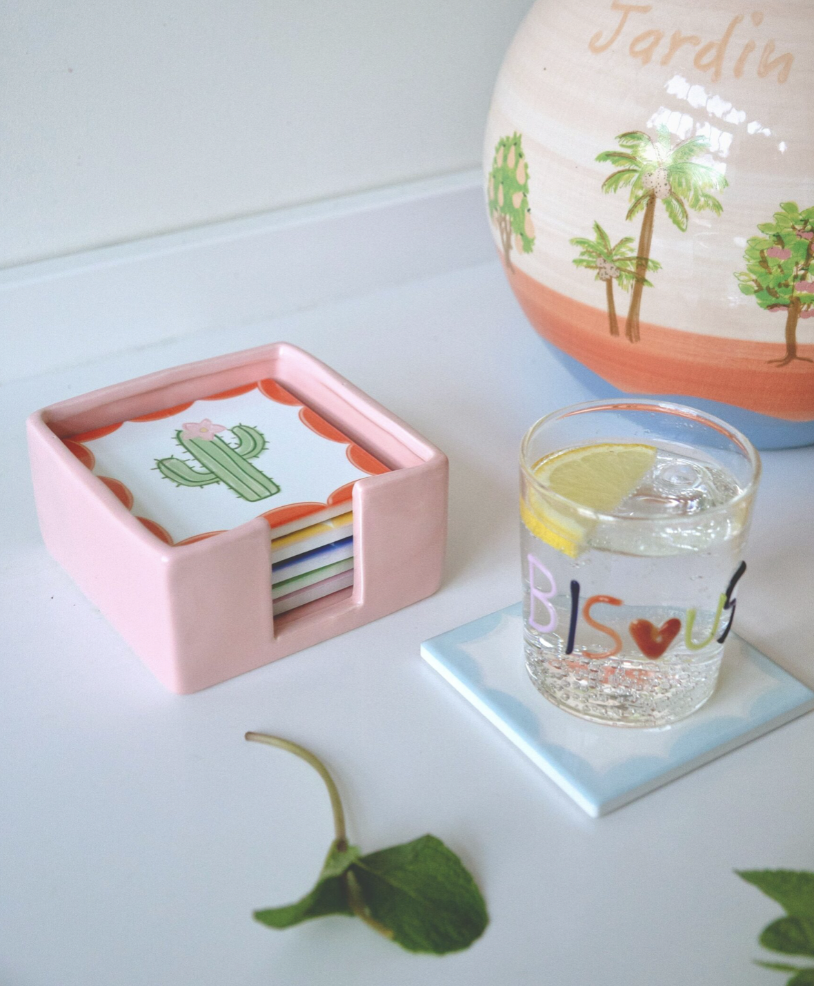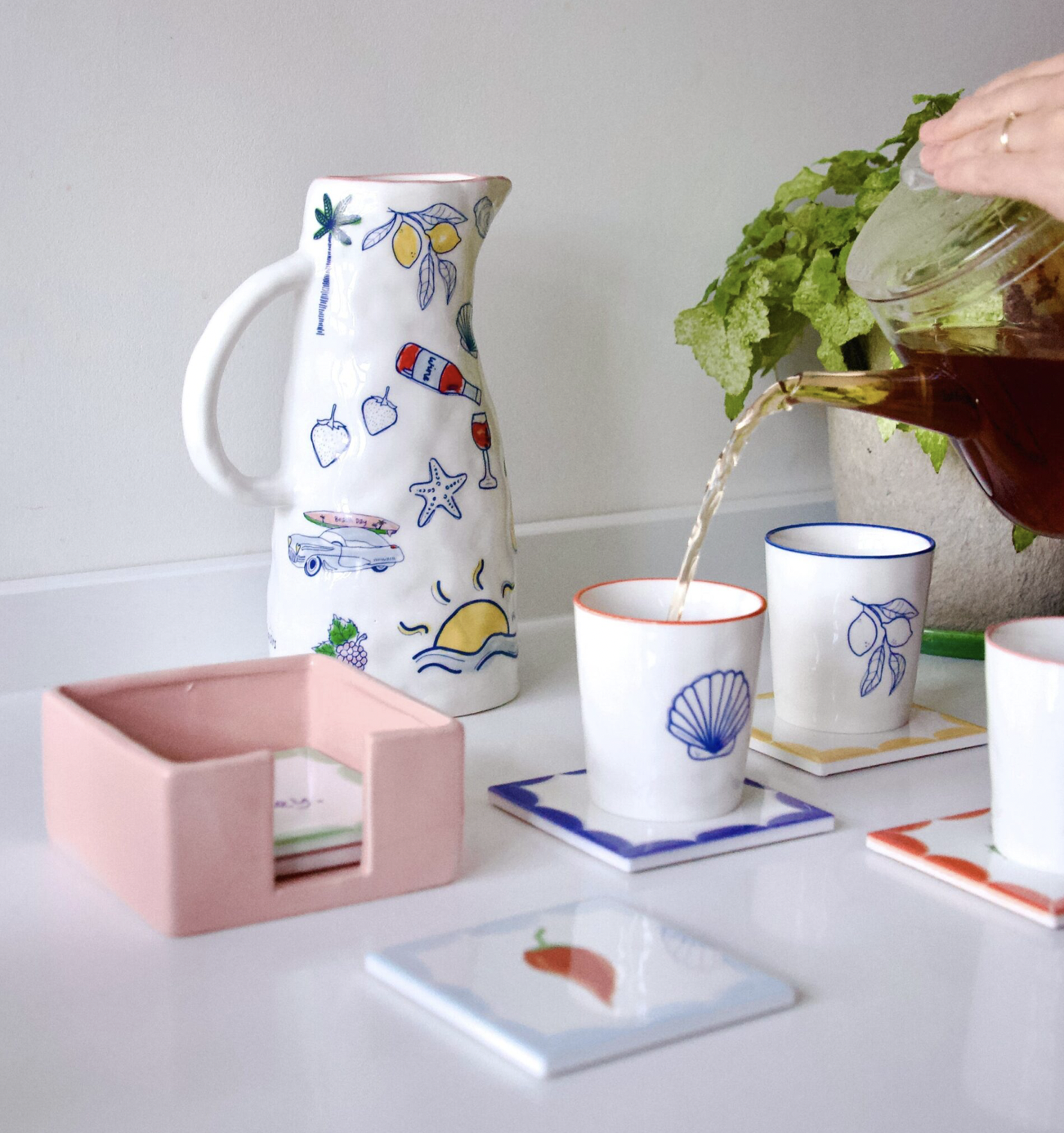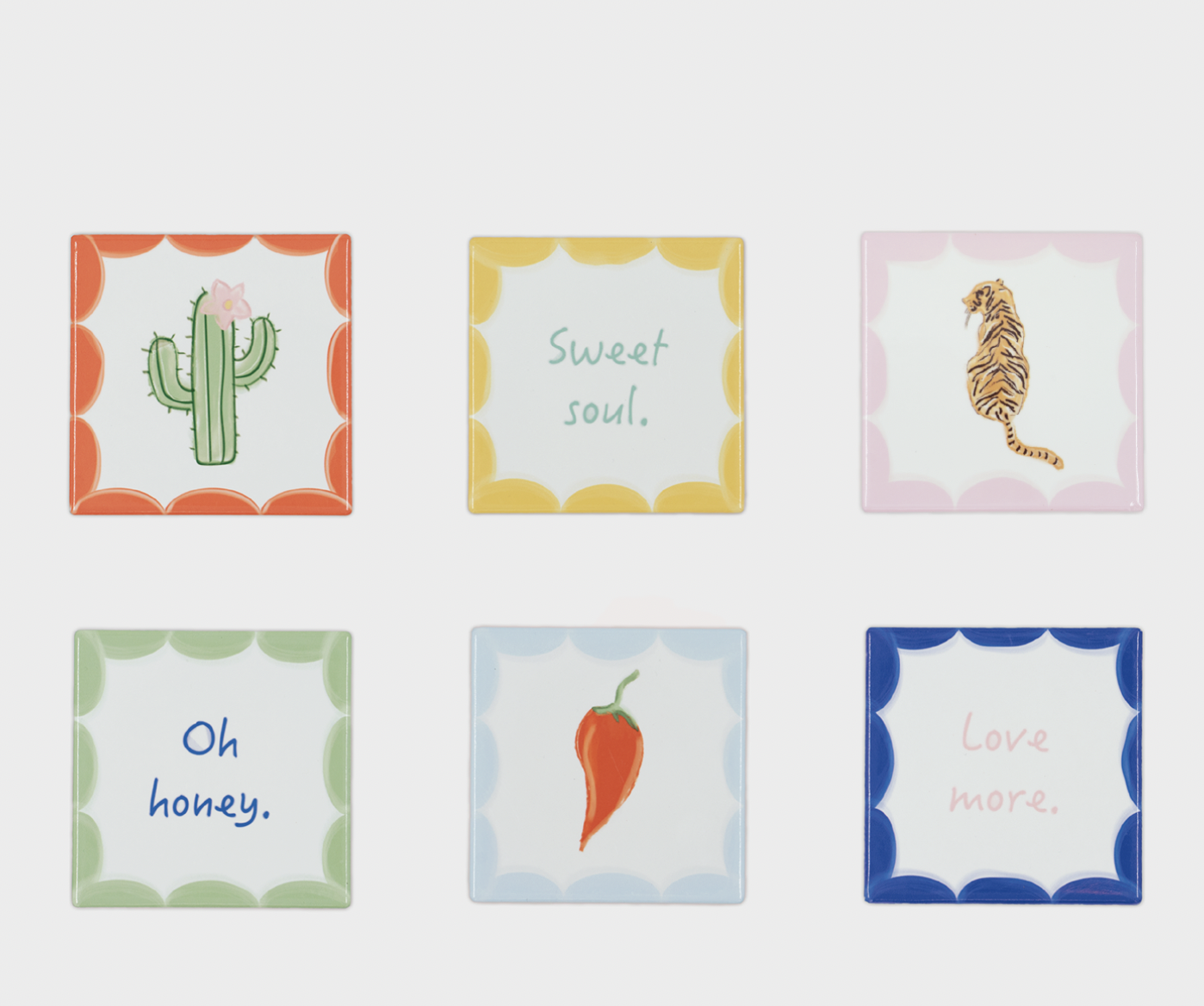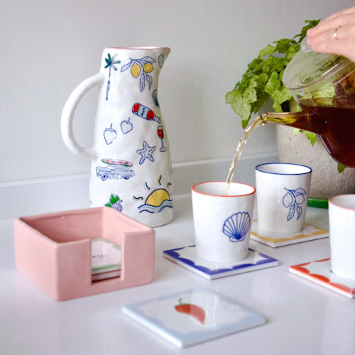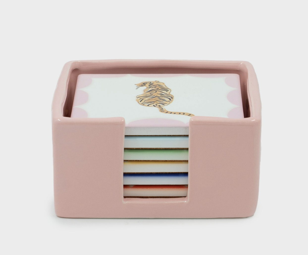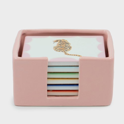 Maak van elk drinkmoment een feestje met deze set van 6 vrolijke onderzetters van And Nook. Versierd met kleurrijke illustraties en leuke tekstjes zoals een tijger, rode peper en cactus. De roze geglazuurde houder maakt het helemaal af. Geleverd in een feestelijke giftverpakking. Leuk als cadeautje of gewoon voor jezelf. Met deze set vrolijk je elk hoekje (nook) en gaatje van je huis op.