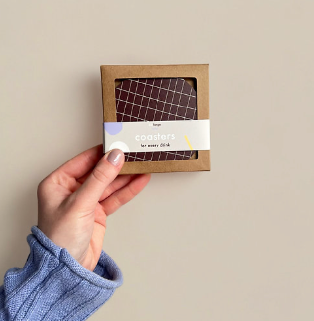 De Lange Tafel Onderzetters (set van 4) - Checked Aubergine