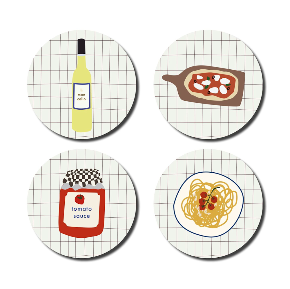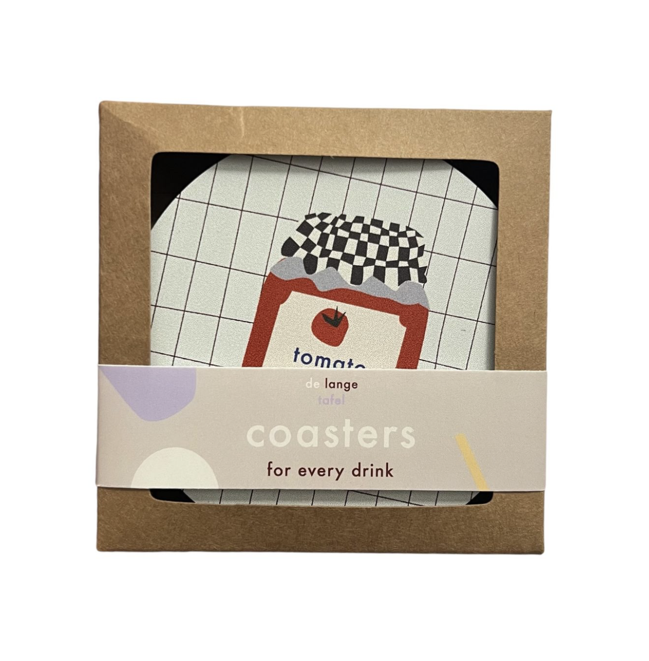 Vrolijk je tafel op met deze gezellige onderzetters van De Lange Tafel. Eigenschappen Formaat: Ø 10 cm Set van 4 stuks Materiaal: aluminium