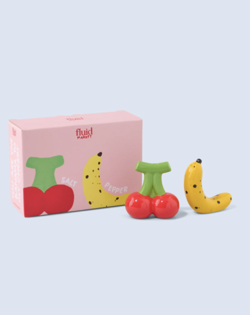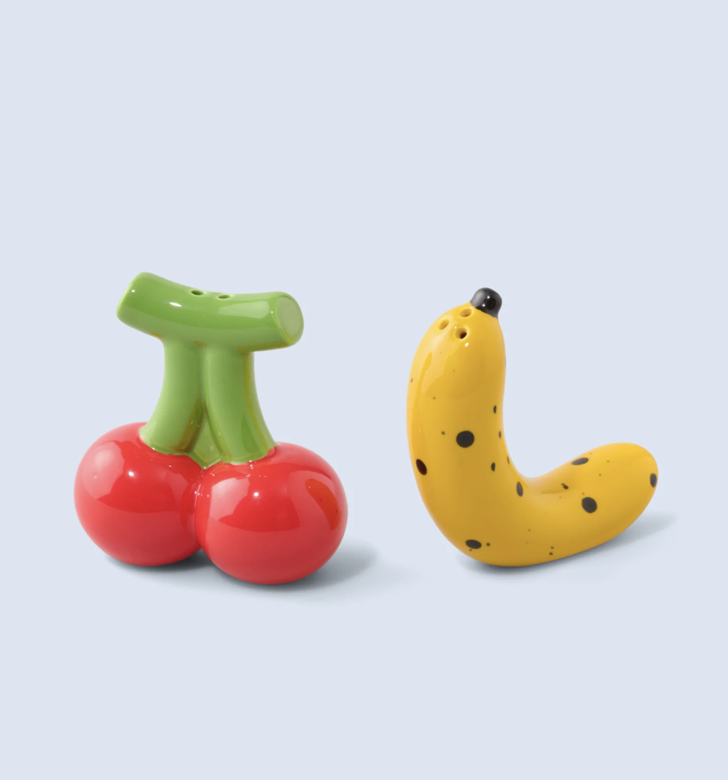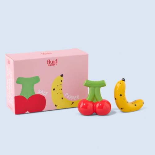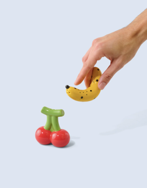 Ontdek deze originele peper en zout set met een knipoog naar alledaagse voorwerpen of voedingsmiddelen. Een fruitig duo op je tafel?