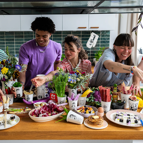 Jouw glimlach, daar is het helen b om te doen. Of je nu op het werk van een koffie slurpt of met de familie van het ontbijt geniet. De rode draad doorheen de gehele collectie zijn de creaties met figuren en quotes in de typische tekenstijl van Helen Blanchaert die je dag kunnen opvrolijken. Of dat op porselein, textiel of papier is heeft geen belang.