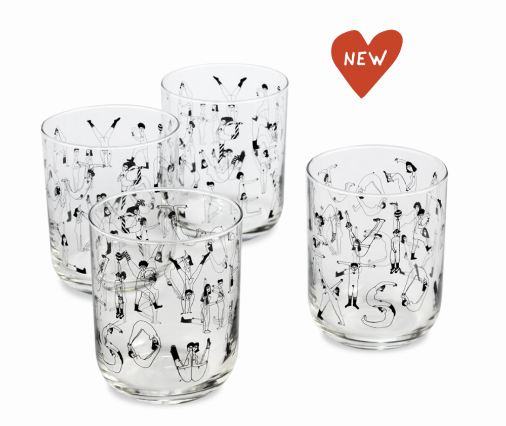Set van 4 glazen met de populaire illustratie van helen b. Verpakt in een mooie kartonnen cadeauverpakking.