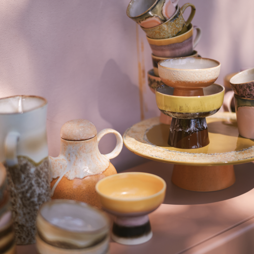 De 70s ceramics Coffee collectie is veelzijdig, stijlvol en vaatwasmachinebestendig, en combineert praktisch gebruiksgemak met de allure van vervlogen charme.