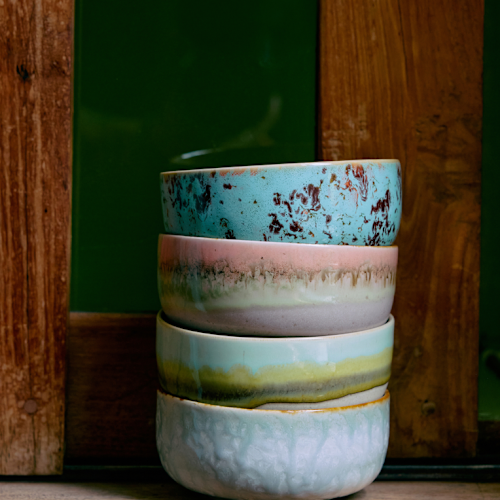 Elk exemplaar is uniek en met de hand afgewerkt. Heerlijk om je tafel op te vrolijken tijdens een gezellige avond, apero date of bij het dessert.