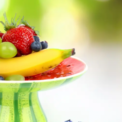 Een vrolijke fruitschaal op voet voor al je zoete tussendoortjes deze lente en zomer. Smullen maar ;)
