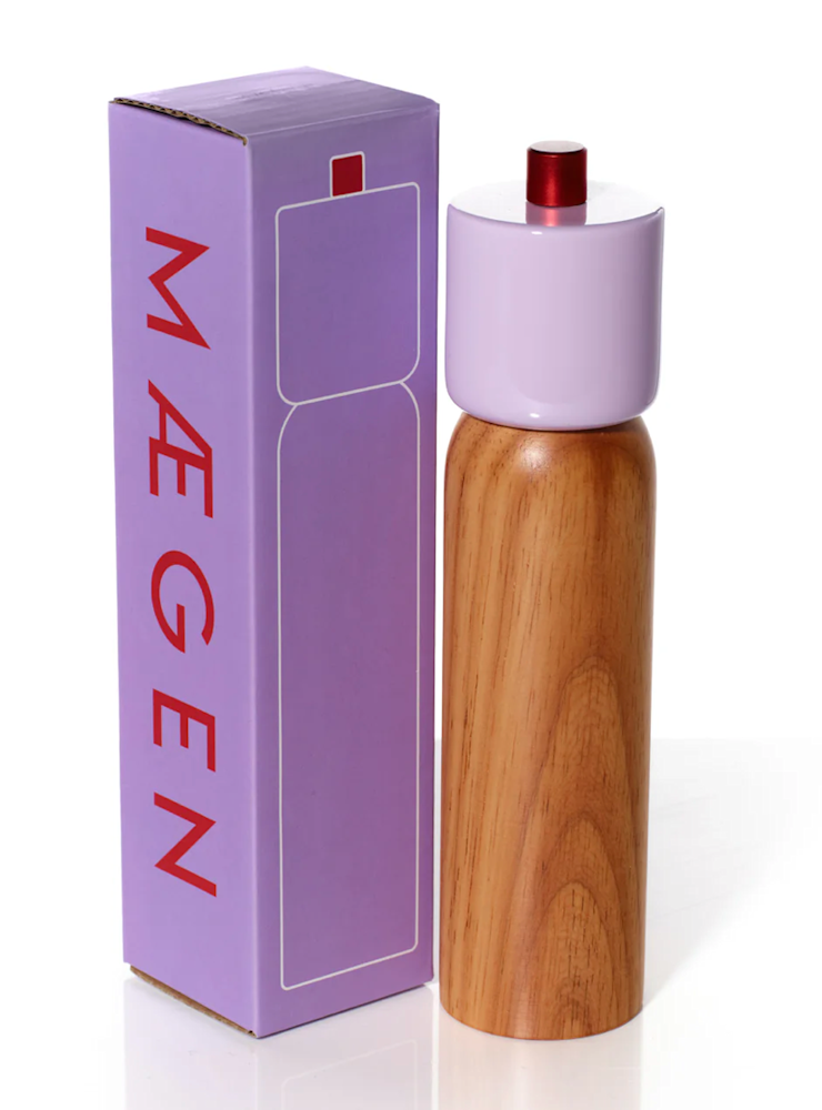 Combineer duurzaamheid met stijl en kleur op je tafel met deze peper/zoutmolen van Maegen. Hoogte 21 cm Gemaakt van duurzaam rubberhout
