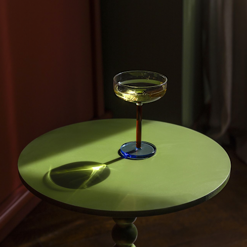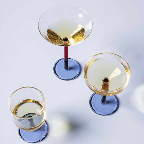Hef je glas op de Bobbie-collectie! Deze 21cl coupeglazen, met hun diepblauwe en stijlvolle bruine voet, zijn perfect voor feestjes thuis. Ideaal voor cocktails of bubbels. Klaar voor een speelse twist aan je eettafel. Cheers!