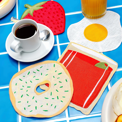 Brunch wordt nog een stuk leuker met deze gezellige onderleggers (100% linnen) van het Amerikaanse Piecework.
