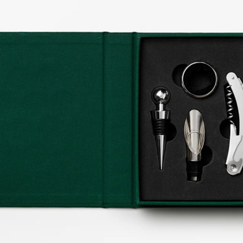Ontdek de essentiële kit voor het perfectioneren van je wijnervaring - een verfijnde gereedschapskist in een elegante boekdoos.