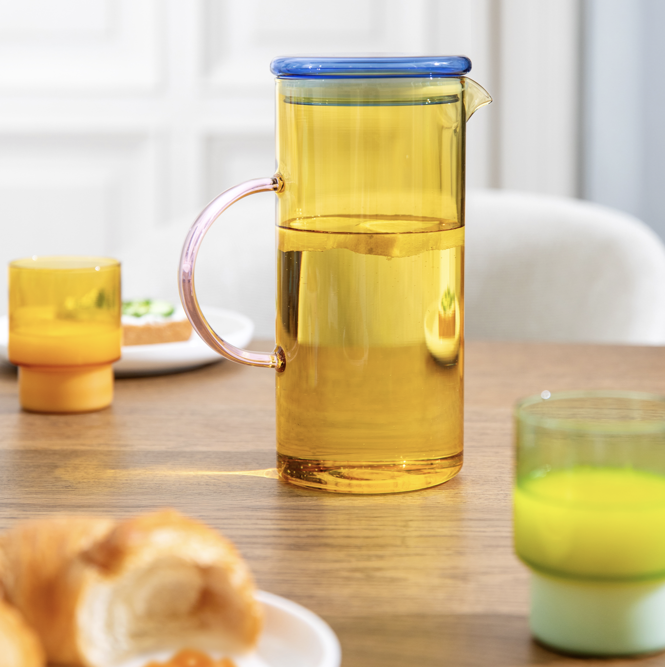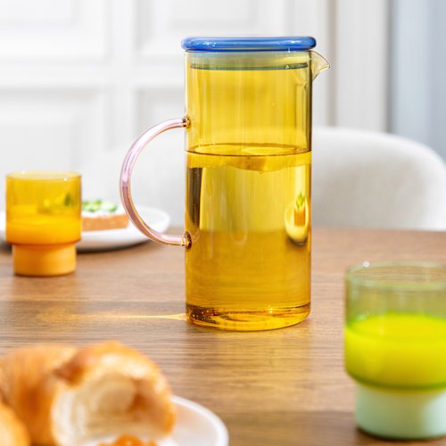 Zin in een verfrissend drankje? Of het nu sinaasappelsap, water of ijsthee is, deze gekleurde kan is perfect om allerlei drankjes in te schenken of koel te houden in de koelkast. Dankzij de siliconen rand zit het deksel stevig en stevig bij het inschenken en beschermt het tegen dorstige insecten in de zomer.