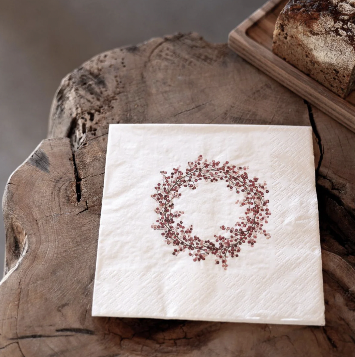 Servetten Vierkant (20 st) - Kerstkrans Rood
