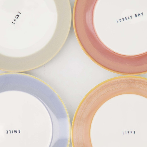 Vrolijk je tafel op met deze knappe gebaksbordjes. Materiaal: keramiek Afmetingen: Ø14,5x1,5cm