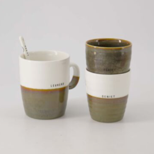 De Zusss koffiemok donkergroen brengt sfeer op je tafel. Deze keramische mok in wit en donkergroen met een subtiele glans is perfect om rustig van je koffie te genieten. De koffiemok voelt fijn in de hand dankzij de golvende structuur en heeft een stoere, basic uitstraling. Ideaal voor iedere koffieliefhebber die een beetje extra gezelligheid wil toevoegen.