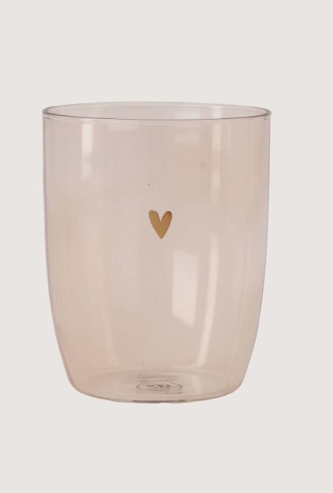 Dit drinkglas met hartje is charmant en stijlvol, perfect voor dagelijks gebruik. Gemaakt van duurzaam kunststof, wat zorgt voor lichtgewicht en breukbestendige eigenschappen. Met een afmeting van 8,5 cm hoog en een diameter van 7,5 cm past het glas goed in de hand. Het kleine gouden hartje op het glas geeft het een bijzondere uitstraling.