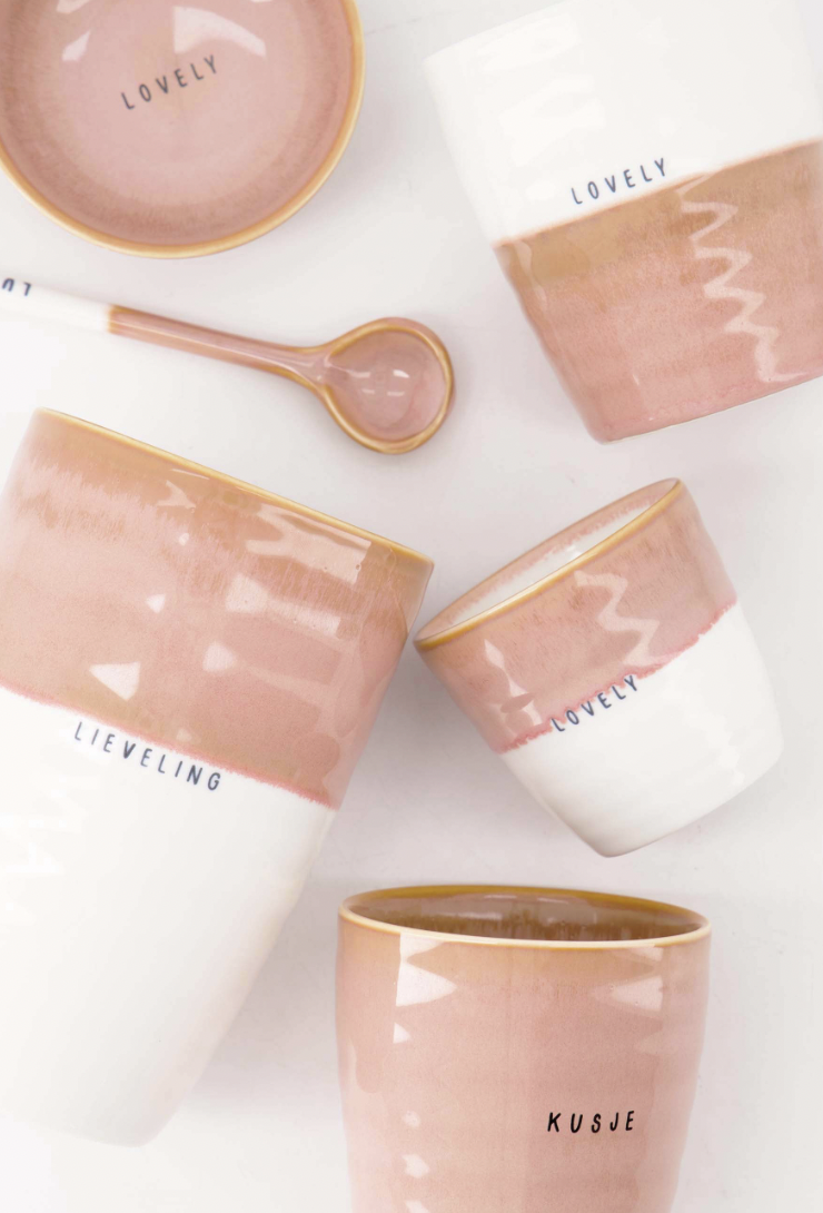 Deze Zusss koffiemok is perfect voor jouw gezellige koffiemomenten. Gemaakt van hoogwaardig keramiek. Met een mooie combinatie van wit en donkerroze. Met een afmeting van 7 cm hoog en een diameter van 7 cm, ligt de koffiemok fijn in de hand.