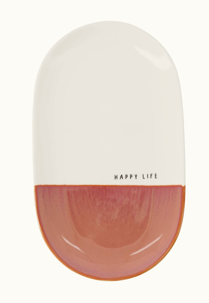 De Zusss serveerschaal is een mooie toevoeging voor je keukencollectie. Deze serveerschaal valt op door het warme wit gecombineerd met een warme bordeaux onderkant en de subtiele tekst 'happy life'. Perfect om hapjes of broodjes stijlvol te presenteren. Dankzij het keramische materiaal voelt de schaal stevig en kwalitatief aan, en is hij eenvoudig te combineren met andere tafelspullen.