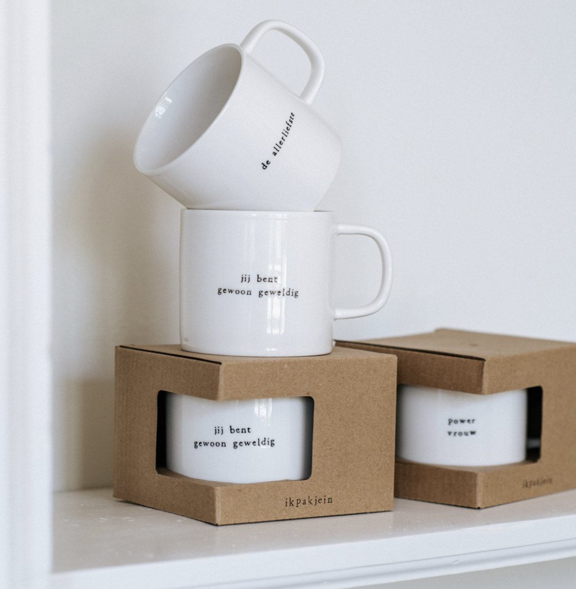 Begin je dag goed met een leuke mok! Keuze uit verschillende teksten, met een knipoog. De mokken van 'Ik pak je in' zijn gemaakt van hoogwaardig keramiek.