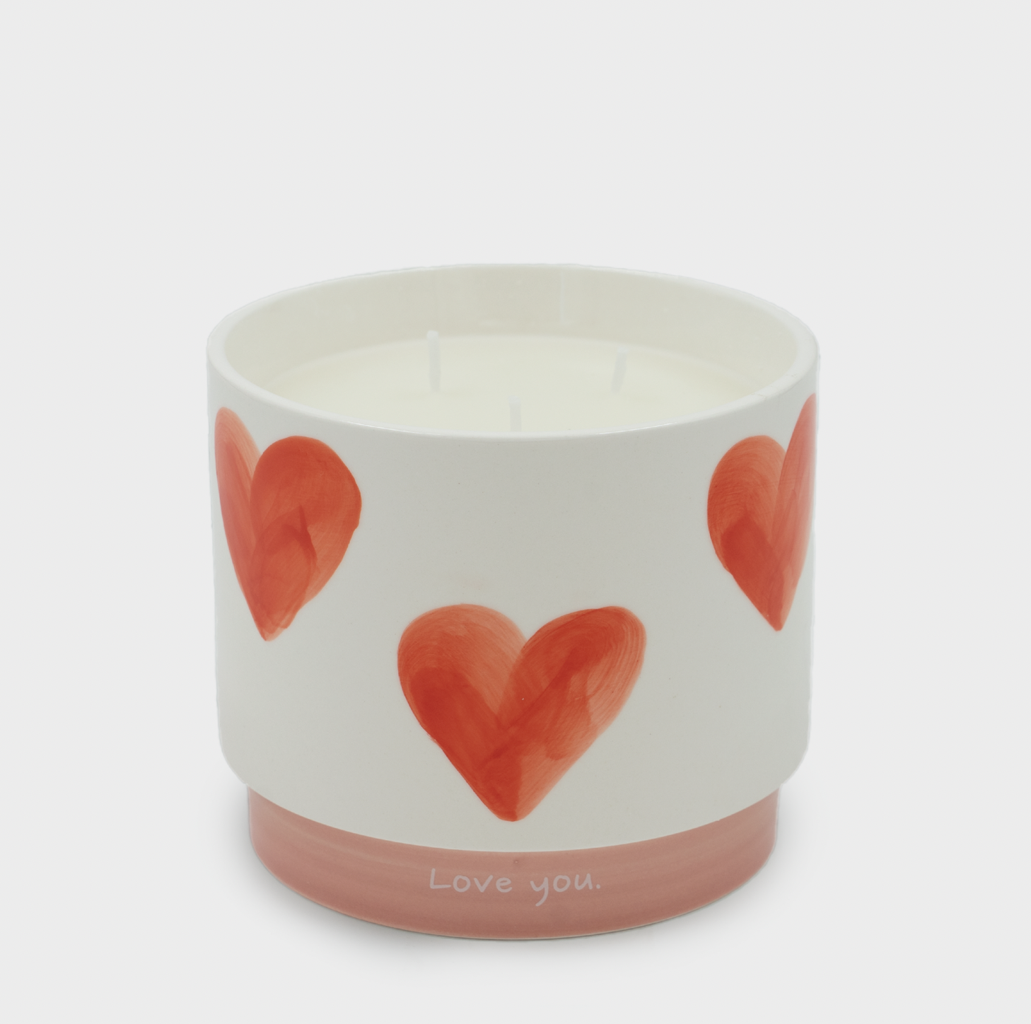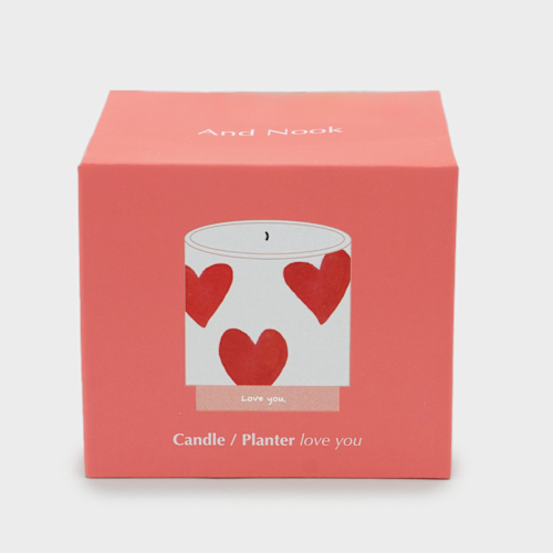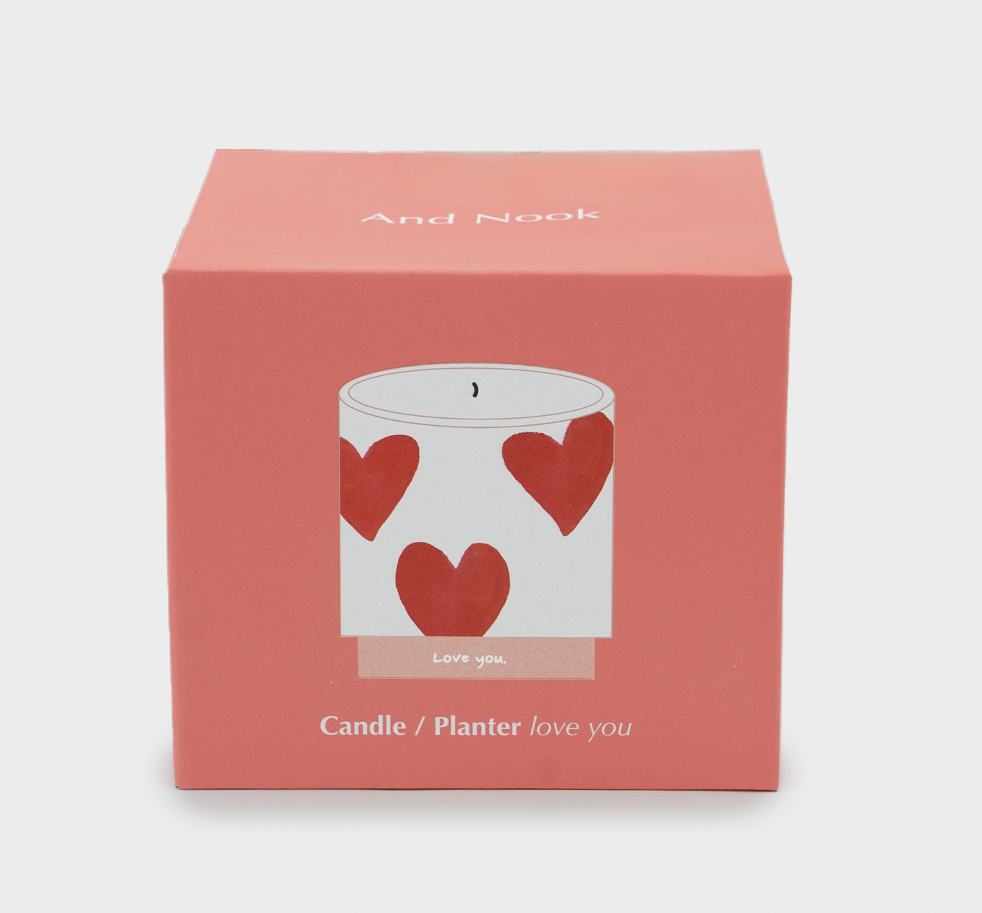 Deze met de hand beschilderde pot met lieve hartjes en de tekst “love you” is een gezellige kaars (met 3 wieken) en ongeveer 35 uur brandtijd op de teller. Zodra de kaars is opgebrand, kan je de pot hergebruiken als een stijlvol plantenpotje, perfect voor kleine planten. Het biedt twee doordachte toepassingen in één, die warmte en groen in je huis brengen.