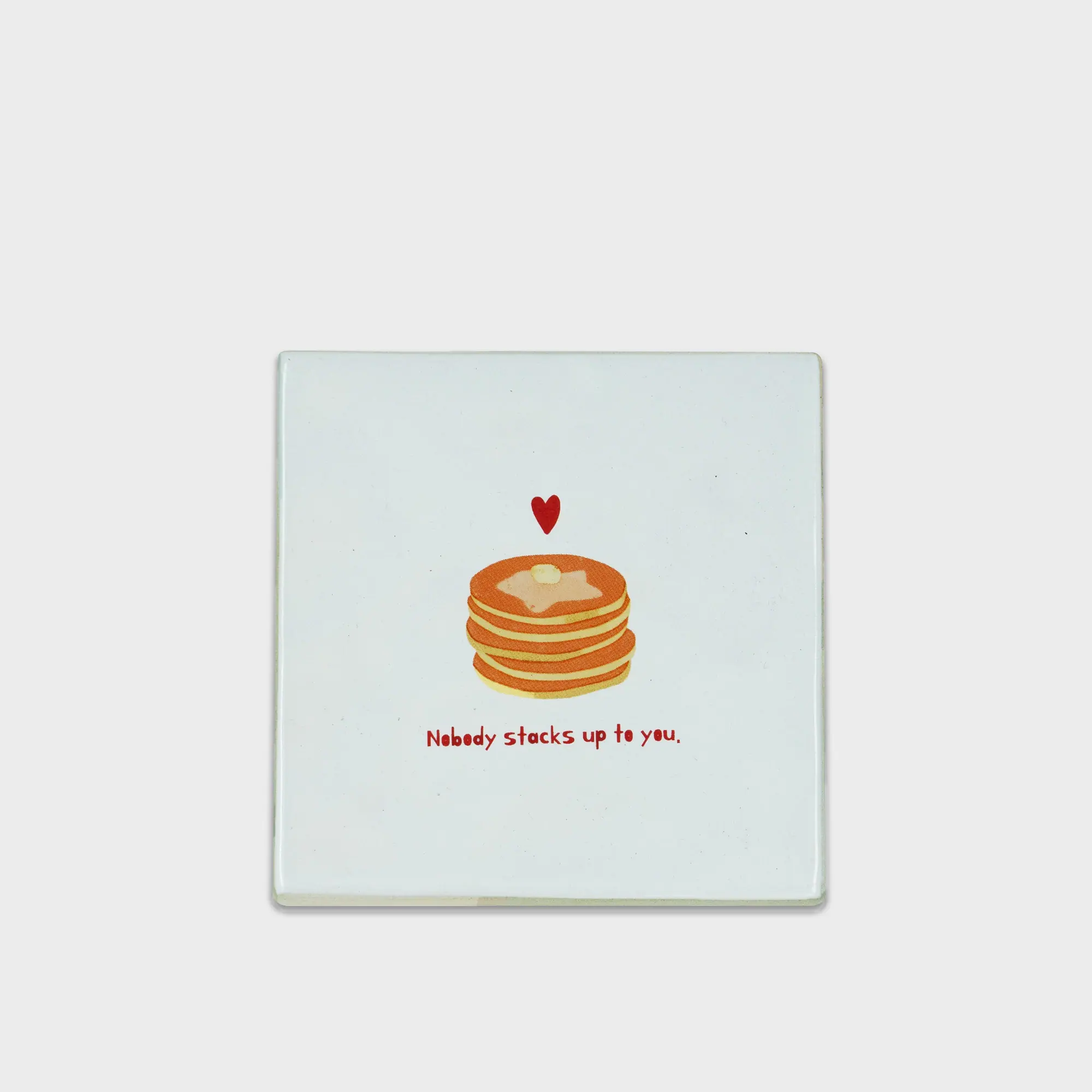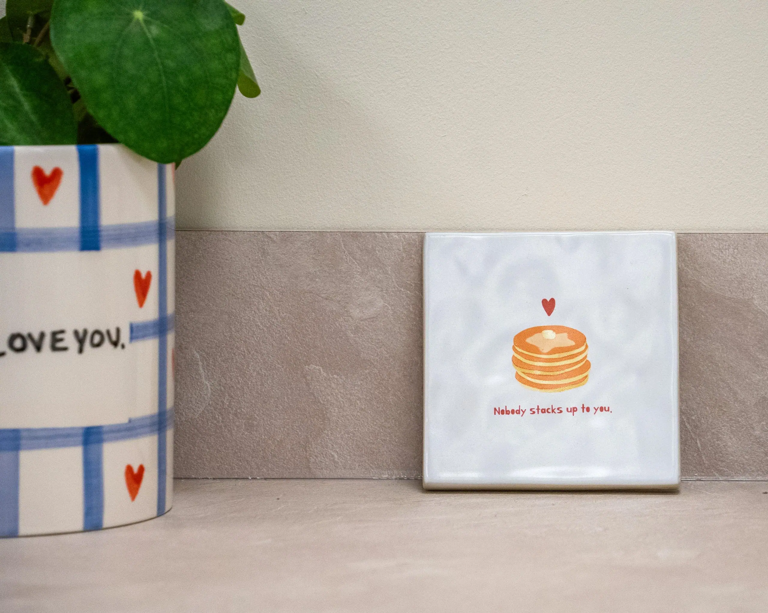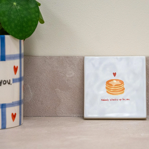 Deze schattige keramieken tegel heeft een tekening van een cappuccino met latte art in de vorm van een hart. Op het tegeltje staat de tekst ‘coffee?’. Een charmante uitnodiging om binnenkort een kopje te gaan drinken...