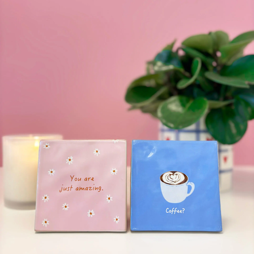 Deze schattige keramieken tegel bevat tekeningen van kleine madeliefjes met de lieve boodschap 'you are just amazing'.