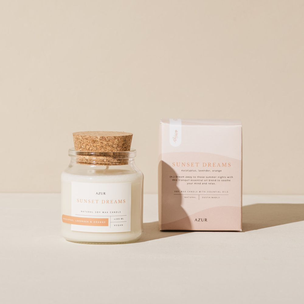 Deze natuurlijke kaars biedt een heerlijke ervaring door het gebruik van pure essentiële oliën van sinaasappel, eucalyptus en lavendel. In tegenstelling tot conventionele kaarsen die vertrouwen op synthetische parfums, zorgen hier enkel pure essentiële oliën voor een aromatherapie-ervaring.