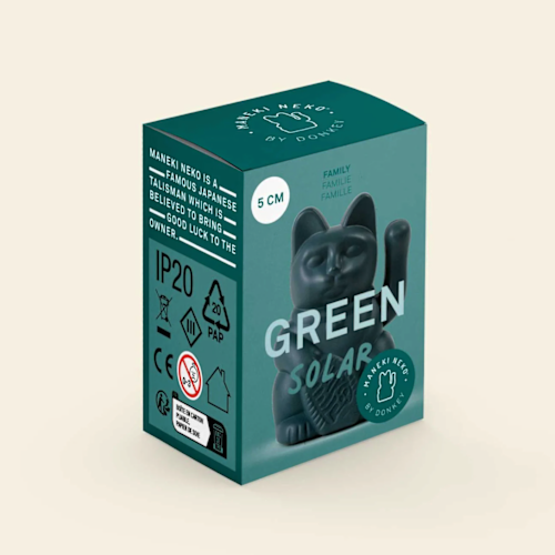 Nieuw, deze solar editie ;) Ook zonder batterijen blijft deze lucky cat de ganse dag wuiven dankzij zon- of artificieel licht... Mini van formaat maar dankzij zijn warme kleur, een echte krachtpatser in je interieur.