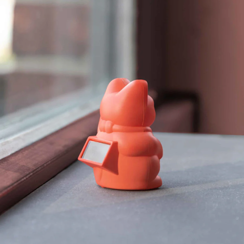 Nieuw, deze solar editie ;) Geen batterijen nodig, deze lucky cat blijft de ganse dag wuiven dankzij zon- of artificieel licht... Mini van formaat maar dankzij zijn neon kleur, een echte krachtpatser in je interieur.
